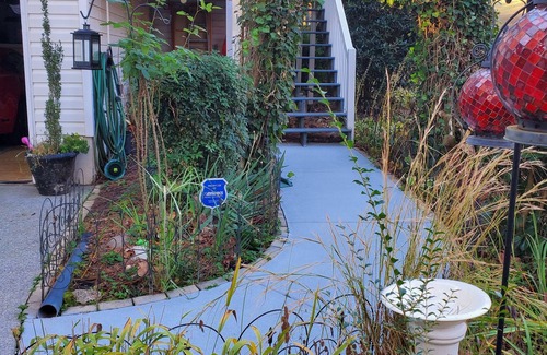 2nd floor romantic apartment with European decoration to host travelers and fur babies; plenty of room in the Kitchen/Living room with fireplace, huge refrigerator, microwave, dishwasher, TV on top of sink and in the living room, mobile island with high chairs, glass dining table for 6 and electric stove; comfy bedroom with TV, desk, ceiling fan and closet; full bathroom; front porch to enjoy the tea or bkf time; lot of room to park on the driveway and windows views to check your car from the top; Nest thermostat to control AC/HEATER, comfy chairs to watch movies and a generous sofa to use like extra bed. Few minutes driving to lake Allatona. Quiet/safe neighborhood to walk your leashed babies.