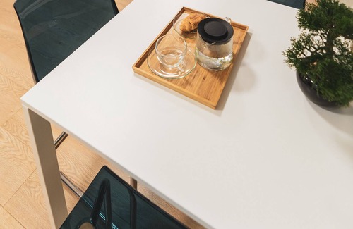 The open plan living area includes a sofa, designated work space, coffee table and small dining area plus a fully equipped kitchen. There is a flat screen TV, and use our complimentary WiFi. You will have everything you need to relax after a long day of work or play.