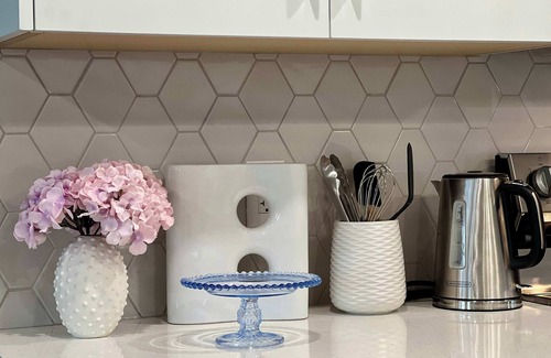 Gather around the sleek dining table and enjoy meals or snacks with your loved ones. The kitchen is stocked with everything you need, including: