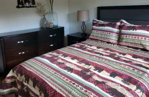 Large comfy couches in front of the fireplace and large TV with extra blankets for cuddling. Plenty of room for everyone. Everyone can help with meals there is enough space in the kitchen. Outside dining and cooking is available. You are right on the trails for ATV and Snowmobiles. Plenty of parking and a 2 stall garage. Park in the driveway and hop on the trail no need to haul your equipment any further.. Beach, Lake, Steam train tours, Country Club/Golf Course all less than a mile from the property.