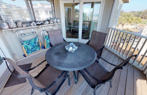 Full of beachy charm this villa features light and bright furnishings throughout with new tile flooring throughout entire condo. Enjoy a fully equipped kitchen with beautiful countertops, stainless steel appliances, and seating for four. The villa also features a large bedroom with beautiful bedding, a flat screen TV, and access to the screened porch with beach chairs for guests' convenience. The second floor allows access to a private sun deck with panoramic views!