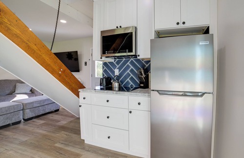 KITCHENETTE: Fridge, stove, microwave, toaster, Keurig, tea kettle, cooking basics, dishware & flatware, trash bags, paper towels