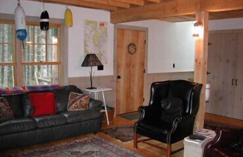 Waterfront Access: Newly built post & beam house nestled in the woods with easy access to amazing shorefront on point between Crockett Cove and Burnt Cove. Adjacent to conservancy lands w/ ample hiking. Fenced yard for pets. Due to tree growth views are from second floor only.