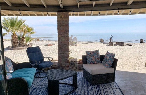 Bring the whole family to this updated Off-Grid Solar Beach House. Property has 3 bedrooms, 3 bathrooms and boasts Beautiful views of Water, Mountains and local Wildlife. Relax on the wrap around covered patio or under one of the two Palapas on-site. Evenings are wonderful watching the sunsets over the Mountains on the desert side and basking under the bright stars. Close by activities include Hot Springs, Desert Adventures, take in some Shopping and Great Food and Music in the Charming Mexican town of San Felipe (24 miles North). House also has 5G Wireless Internet and 3 TV's for Streaming. We provide purified drinking water.
