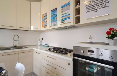 Open space: dining table, sofa bed double, sofa bed, WIFI internet, air conditioning, satellite tv, mosquito net, fridge, freezer, dishwasher, well equipped kitchen, microwave, oven, toaster, italian coffee machine, exit to the patio.