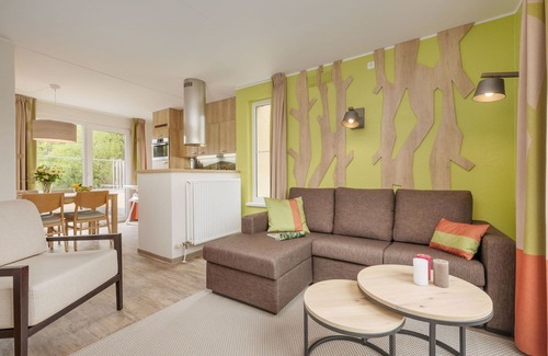 Please note that this is a car-free holiday complex, and the owner does not accept youth groups. Baggage loading and unloading are possible at the holiday house. The holiday park features the subtropical fun pool "Aqua Mundo" (free) with indoor and outdoor pools, slides, wave pool, and a "Water Playhouse." The covered "Market Dome" serves as a central meeting point, offering various restaurants, cafes, shops, and indoor leisure facilities like a football arena with a football school (extra), the House of Games, and an activity program called "Wannabe" for younger children. Additional amenities include minigolf, archery, and climbing (some facilities may incur extra charges).