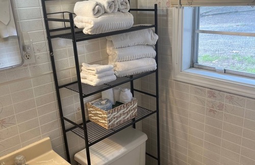 Cabin 6 is a clean, modern one bedroom cabin sleeping a maximum of two people. The bedroom has a king bed, and there's couch in the living room. The screened porch with a view of the woods is where many guests enjoy an evening cookout. Cabin 6 is a favorite with couples in the spring and fall.
