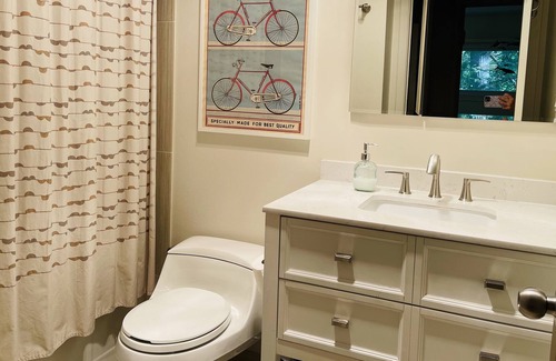 Open and spacious home is available for much of the Summer 2021. Located 1.5 miles from the center of town, this peaceful setting is central to the action & accesses local parks. The house is a midcentury modern ranch home. Set back from the street among trees and overlooking a nature reserve, you will feel private and peaceful. Yet, Kerrytown and the Farmer's Market is a 5-minute bike ride or 20-minute walk.