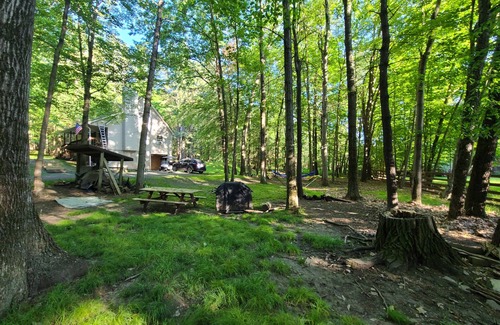 Our house is located on a private 2 acre, wooded lot near Lake Wallenpaupack. It is the perfect year round escape in the Poconos! We are very flexible with check-in/check-out times so please ask if you need to arrive earlier/leave later :-)