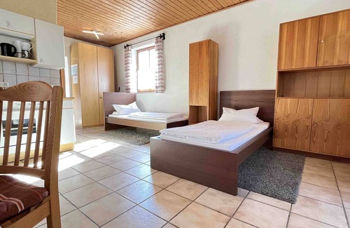 Welcome to our finished 30 m² workers apartment in Schwandorf (district Richt). You will have one bedroom with a double bed and a separate bed. The apartment is good for up to three people.