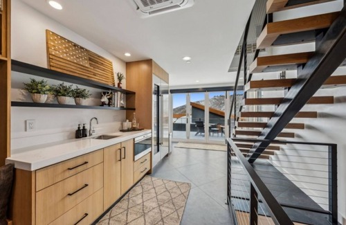 Upon arrival, you’re greeted by an elegant wet bar — perfect for après-ski gatherings — leading onto a rooftop deck with sweeping views of Park City's vibrant downtown and stunning mountainscapes.