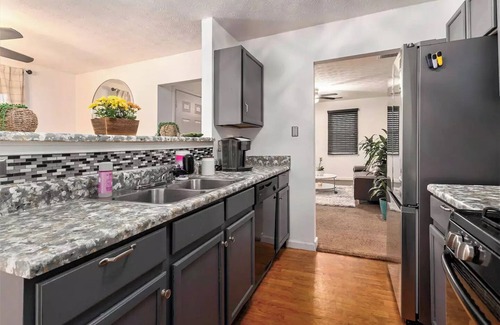 Wake up to a bright, open, & immaculately clean space that feels like home. Fresh plants calm, de-stress, infuse oxygen, & boost your mood & productivity! Use the Keurig for coffee. Enjoy the well-equipped kitchen & individually wrapped snacks! Sit on the screened-in front porch & enjoy the fresh air. Use the lightning-fast Fiber 1000 Wi-Fi for Netflix, the news, or catching up on work in a quiet, serene space. Most of all, make yourself at HOME! You are welcome here & YOU BELONG!