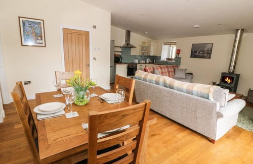 Amenities: Oil underfloor heating and woodburning stove(starter pack provided October - March). Electric oven and hob, microwave, fridge/freezer, dishwasher, Smart TV, WiFi. Fuel, power and starter pack inc. in rent. Bed linen and towels inc. in rent. Highchair and travel cot on request. Off-road parking for two cars. Lockable storage on request. Veranda with furniture and hot tub. One, well behaved pet welcome-£25 supplement per week. Sorry no smoking. Shop 0.6 miles, pub 0.9 mile