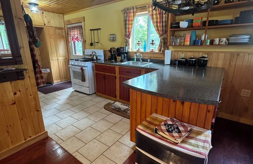 Escape to our family-friendly, lakefront retreat on Upper Cold Stream Pond in Lincoln, Maine, where adventure, relaxation, and lasting memories await. This spacious home is the perfect getaway for up to 8 guests, and offers a truly unique two-story treehouse, built around a towering tree - a favorite for kids.