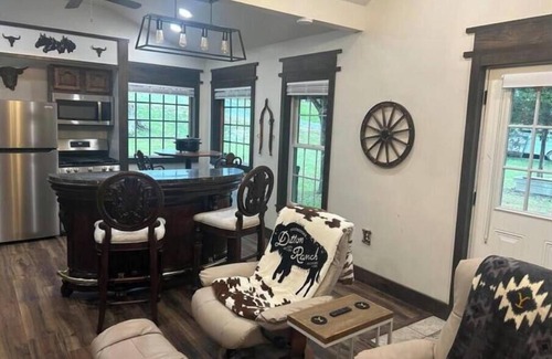 Forget the tourist traps. Reserve this 600 square foot cabin-style home nestled on our 150-acre ranch. Centrally located in the Tri-Cities area with easy access to the Smokey Mountain attractions. An awesome location for horseback riding, fishing, axe throwing, shooting, archery and hiking - all offered onsite. Stay and enjoy all kinds of outdoor activities without ever leaving the property! Dinner can be ordered at the ranch house if you want a night off from the kitchen.