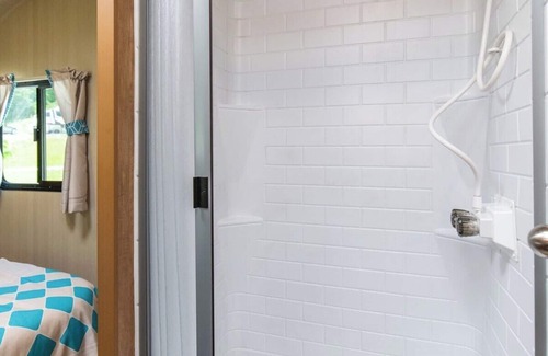 You'll always remember your time at this unique place to stay. Vintage on Wheels is a new retro style camper that is perfect for that quick trip to the RRG. Located at 4 Guys RV Park, guests will experience the glamping life in style! Guests will enjoy all the modern-day amenities in this camper along with, a private campsite, access to the community pool and bathhouse, and only a short commute to all the major attractions. Wood and basic needs are available for purchase at our onsite giftshop.