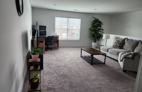 Fully furnished Four-bedroom house available for hosting. The home is located 2 miles from Deaconess Gateway Hospital and St. Vincent Hospital Newburgh. Guests will have access to the kitchen, family room, dining room, back porch, and washer and dryer. Complimentary coffee is provided. Parking is available at the front of the driveway. This excellent house boasts a fitness room, heating, AC, and more. Guests can enjoy the convenience of a washing machine, WiFi, and an iron. Experience what Newburgh has to offer with a stay at our house.
