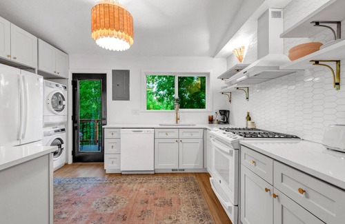 Newly renovated and updated with all brand new furnishings! Back deck with views of Sanitas. Quiet and peaceful fenced front yard with outdoor covered seating area. This home was just newly renovated and furnished. Bright and open, you feel like you are living in a treehouse! Large Master features a work space and King sized bed. 2nd bedroom has large wardrobe for storage and views into the treed back yard. 3rd bedroom with double bed or inquire about option to remove bed to create an office space!