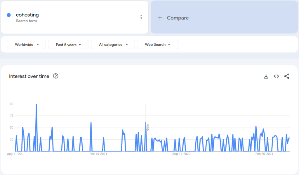 Although not yet clear how co-hosting will work out for Airbnb, according to GoogleTrends, there is a clear rise in popularity for the search, “co-hosting” in the last few years. Whether this is enough to help Airbnb’s stock bounce back or not, we’ll see in October.